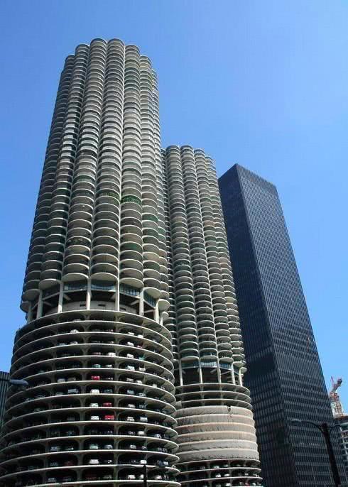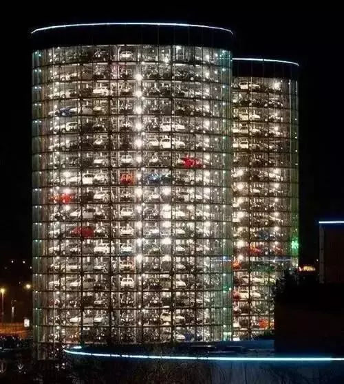 這其實(shí)是大眾德國的沃夫斯堡的停車場。兩幢圓柱形汽車塔高20層42米,每幢塔樓可以存放400輛大眾汽車。