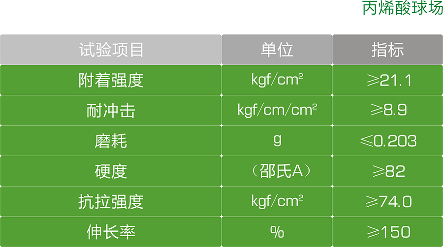 丙烯酸球場:色彩鮮艷,耐磨性好,保養(yǎng)容易,全天候使用,優(yōu)異的抗紫外線性能